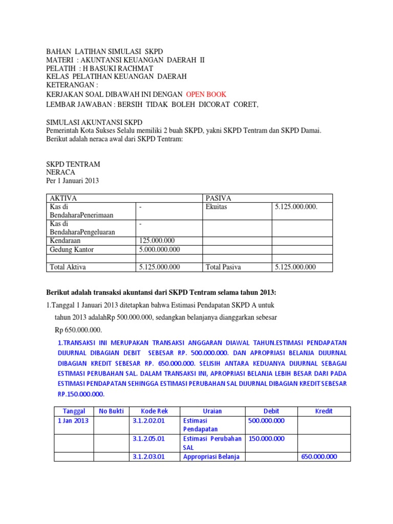 94606146 contoh akuntansi skpd docx akuntansi pada satuan kerja perangkat daerah skpd a jurnal otorisasi anggaran 1 untuk mencatat alokasi anggaran course hero. Soal jurnal skpd lo dan lra. Akuntansi pemberian uang persediaan ke dan penerimaan kembali dari skpd diterbitkan sp2d up kepada dinas perhubungan senilai rp.10.000.000,00. Jurnal umum dan jurnal penyesuaian 2. Berikut ini disajikan data yang terdapat di pemko batam yaitu skpd a yang mulai ada kegiatan pada tanggal 1 januari 2013. Simulasi akuntansi skpd berikut adalah neraca awal dari skpd tentram dari pemerintah kota gemah ripah : Aset, kewajiban dan ekuitas dana skpd. Berikut ini disajikan data yang terdapat di pemko batam yaitu skpd a yang mulai ada kegiatan pada tanggal 1 januari 2013. Contoh soal dan jawaban jurnal penyesuaian jurnal penyesuaian keterangan piutang penghasilan bunga penghasilan Klik untuk memperluas informasi dokumen. Tanggal 31 januari 2013, ppkd menerbitkan skp pph 21 sebesar rp. Tentu kita semua tahu bahwa dalam mapel akuntansi tersebut terdapat beberapa kompetensi dasar yang harus dipelajari. Pelaporan … utang perhitungan pihak:
